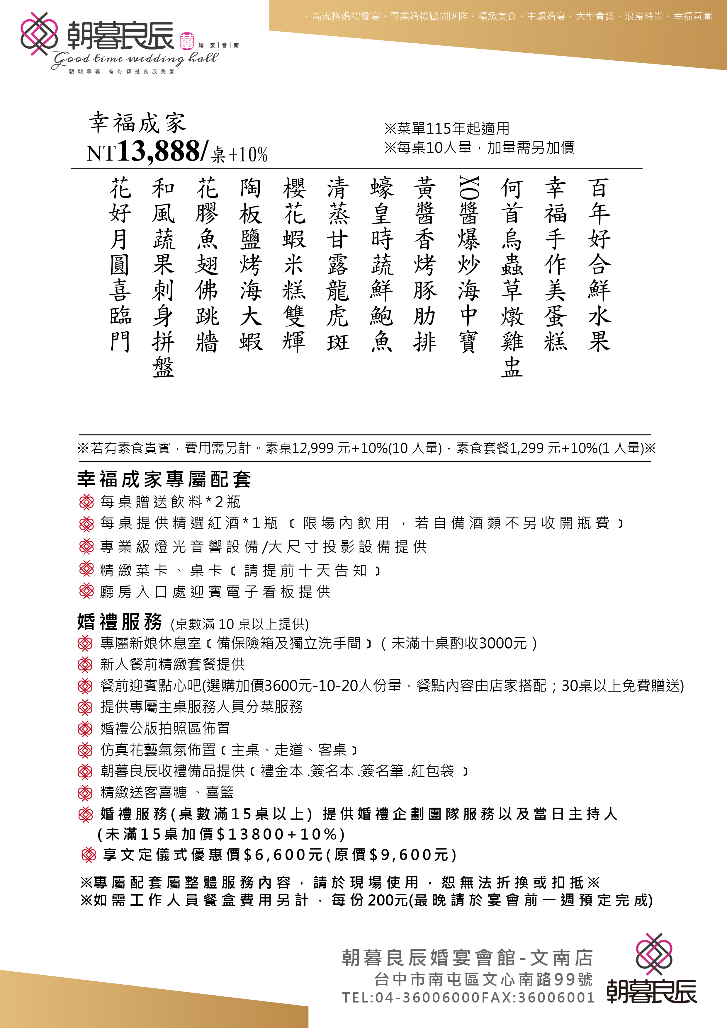 幸福成家01幸福成家婚宴專案NT$13,888+10%