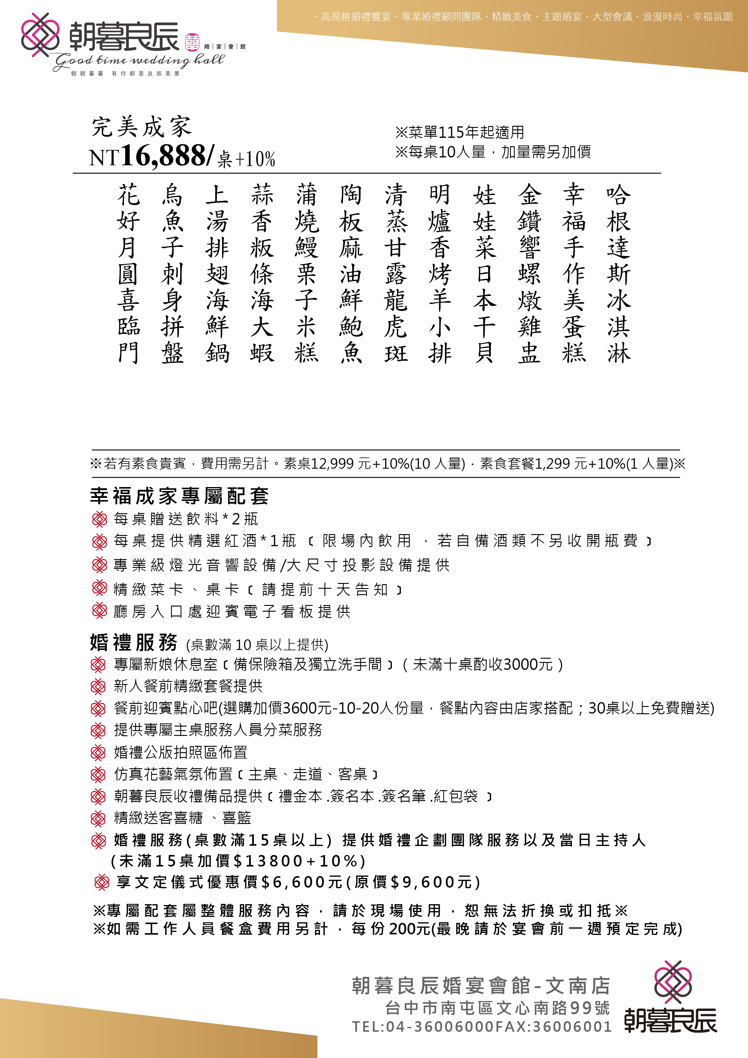 完美成家02完美成家婚宴專案NT$16,888+10%